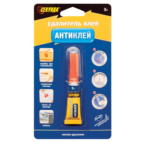 Обращаем Ваше внимание, что, помимо товаров для склеивания, среди новинок также присутствует антиклей «Секунда». Удалитель клея бережно относится к любым материалам, пригоден для контакта с лакокрасочными материалами, не раздражает кожу рук.