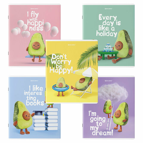Стать оптовым клиентомТетради КОМПЛЕКТ 5 шт., А5, 48 л., BRAUBERG скоба, клетка, глянцевый лак, "Плюшевые Авокадо", 404392