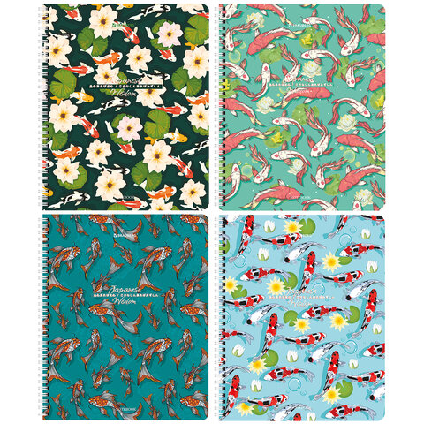 Стать оптовым клиентомТетради ДЭК А5 48 л. КОМПЛЕКТ 4 шт., BRAUBERG, гребень, клетка, TWIN лак, "Карпы Кои", 404661