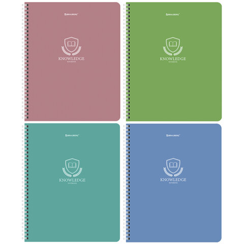Стать оптовым клиентомТетради ДЭК А5 48 л. КОМПЛЕКТ 4 шт., BRAUBERG, гребень, клетка, матовая ламинация, "Knowledge", 404663