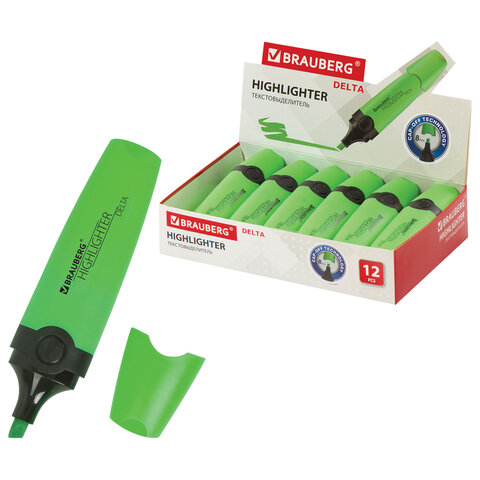 Текстовыделитель BRAUBERG "DELTA", ЗЕЛЕНЫЙ, линия 1-5 мм, 151720