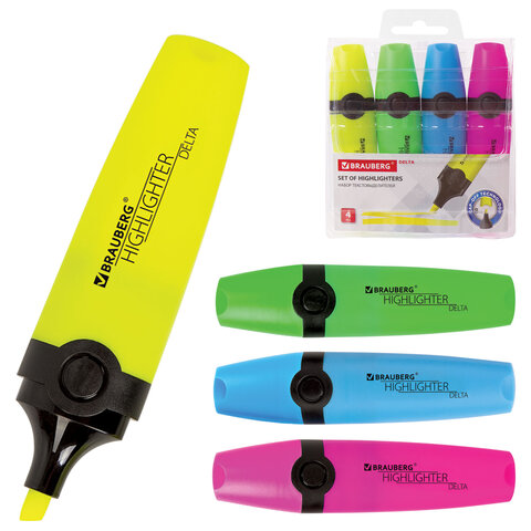 Набор текстовыделителей BRAUBERG 4 шт., АССОРТИ, "DELTA", линия 1-5 мм, 151727