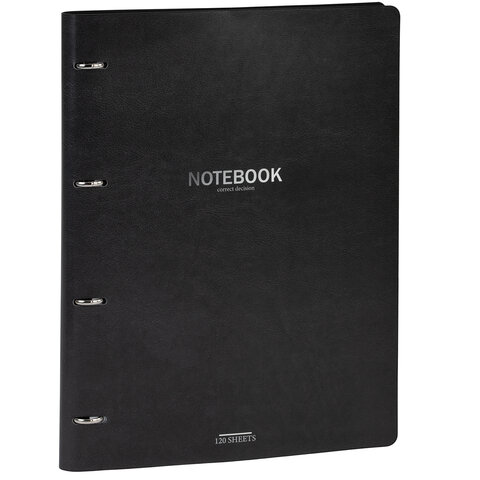 Тетрадь на кольцах БОЛЬШАЯ А4 (240х310 мм), 120 л., под кожу, BRAUBERG VISTA, Black, 404512