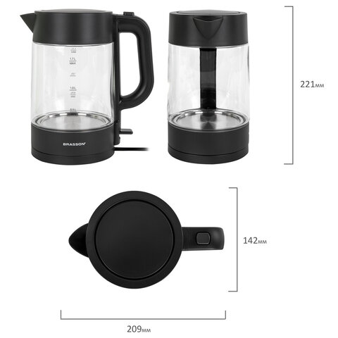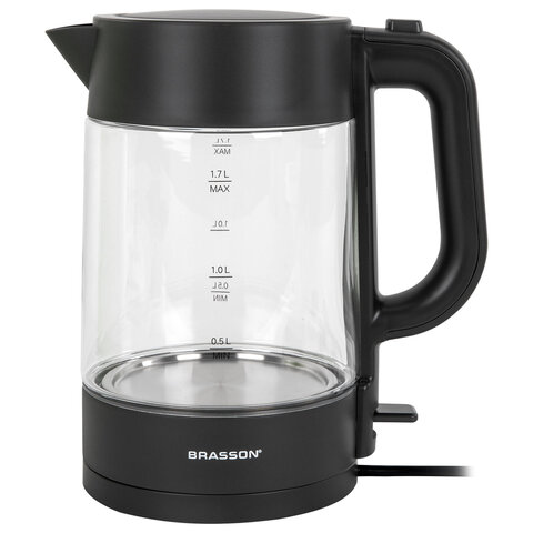 Чайник BRASSON (БРАССОН) KT-727, 1,7 л, 2200 Вт, стекло, графит, подсветка, 455190