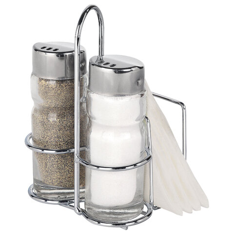 - Комплектация: перечница, подставка, салфетница, солонка