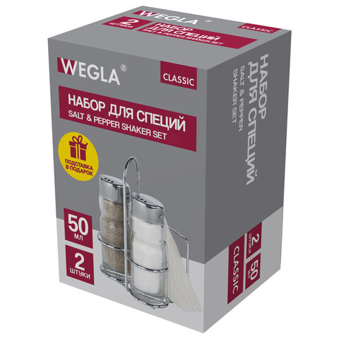 Набор для специй 2х50 мл, CLASSIC, салфетница/подставка + солонка + перечница, WEGLA (ВЕГЛА), 700229