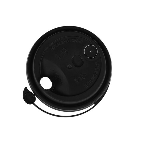 Крышка изготавливается из полипропилена – безопасного для потребителей материала. Универсальный дизайн позволяет использовать крышку как для горячих напитков, так и для холодных, так же имеется заглушка-пробка и пробивной слот для коктейльной трубочки. Диаметр крышки – 80 мм.